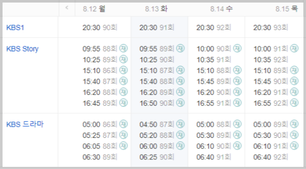 8월 12일 방영된 90회분의 가장 빠른 재방송은 KBS Story TV에서 8월 13일 오전 10시 25분에 방송합니다.